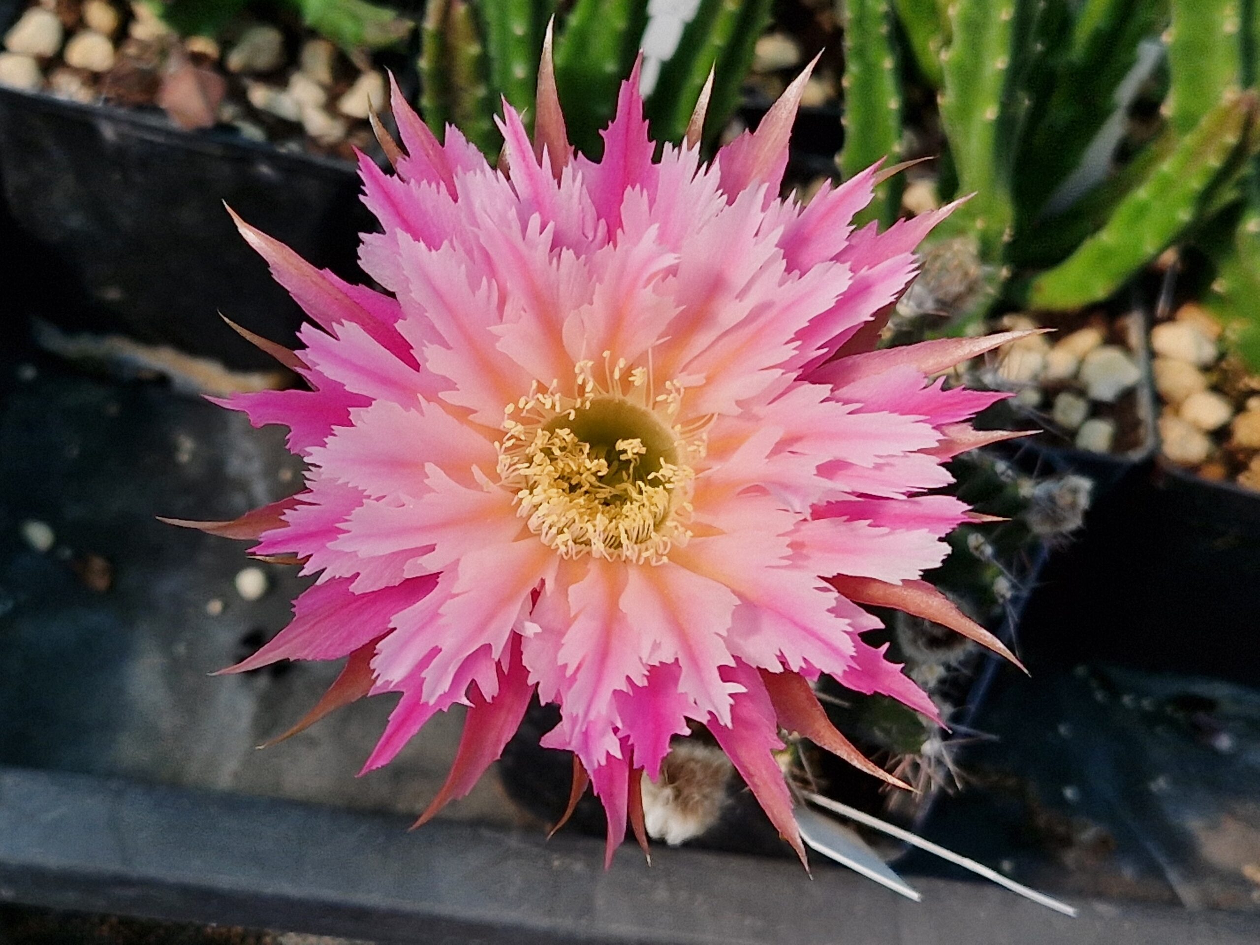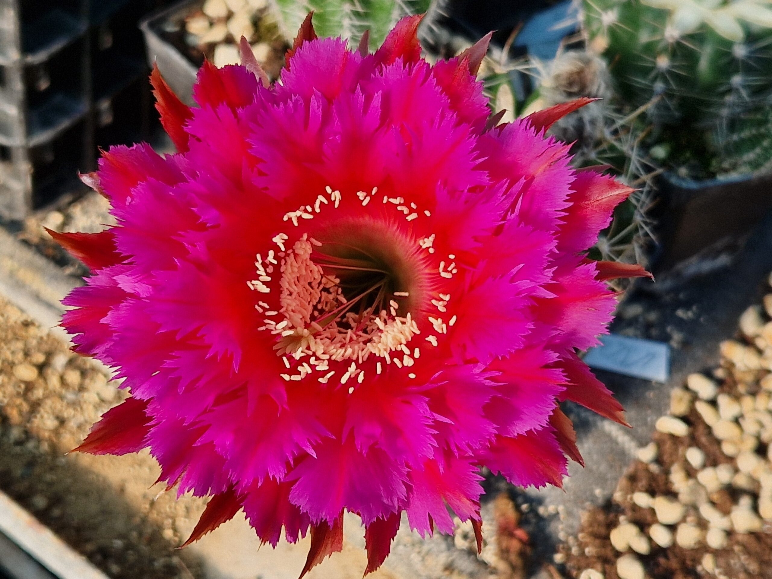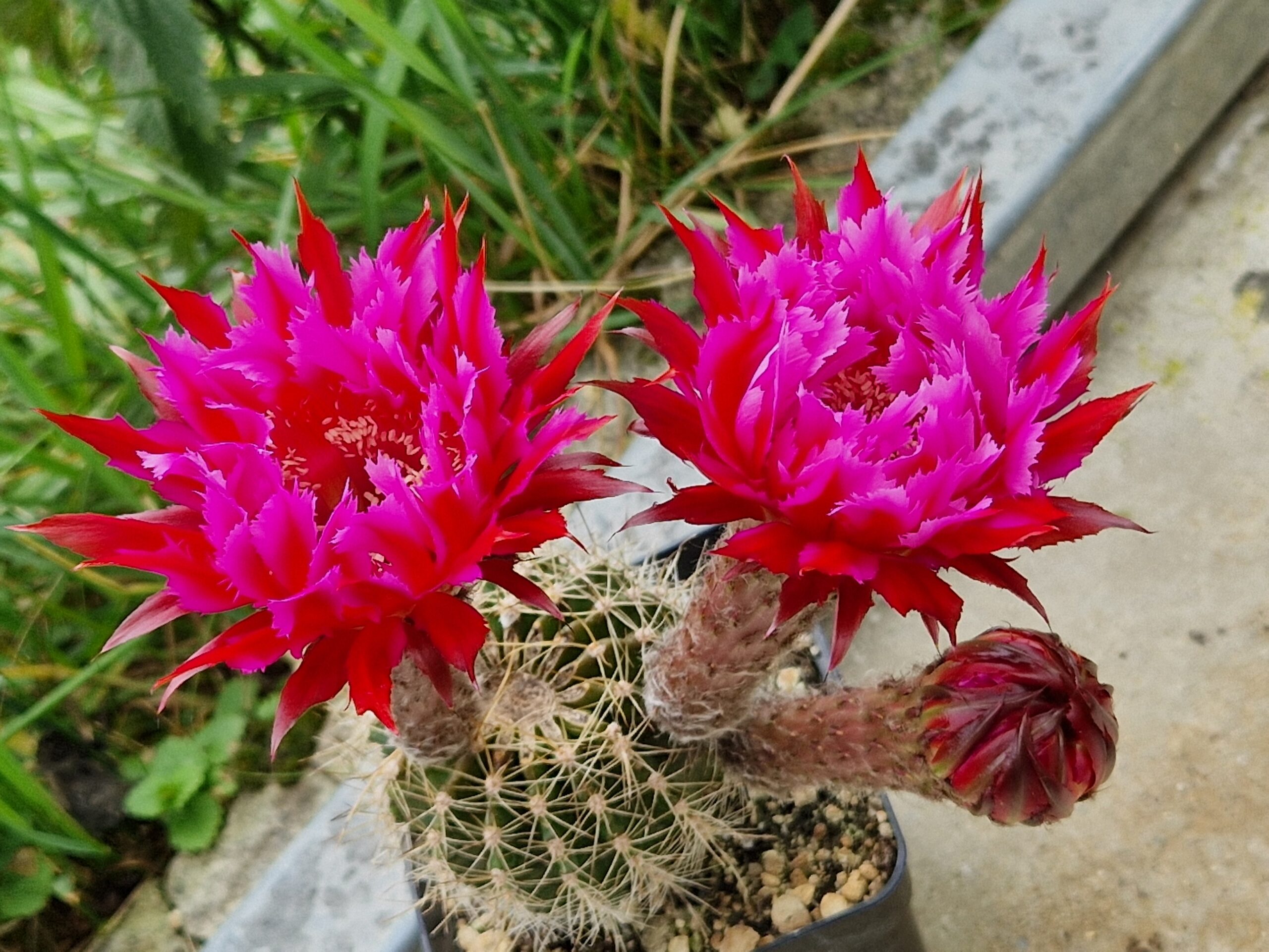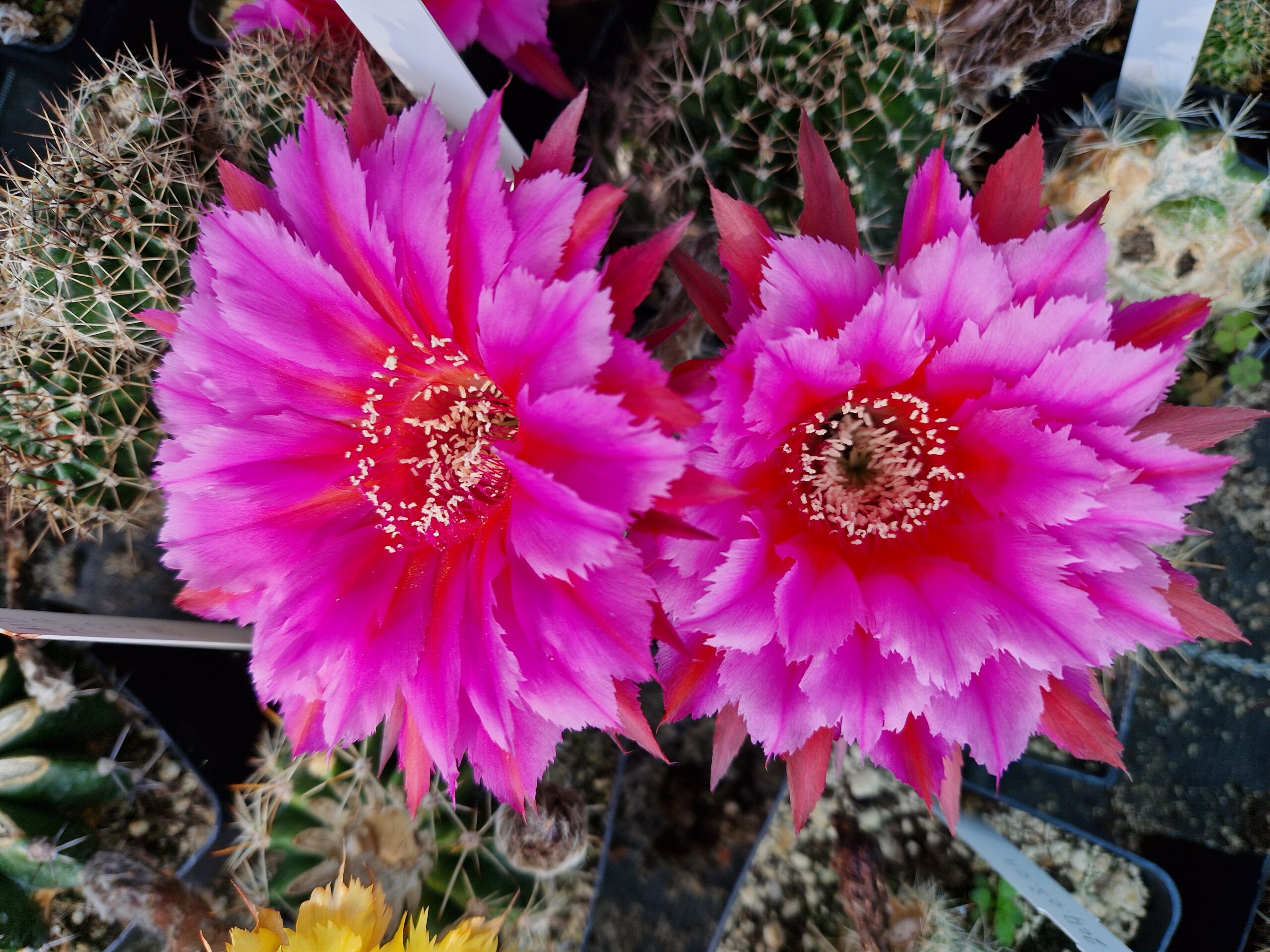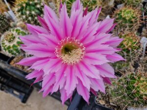 Echinopsis-Kakteen sind für ihre Vielfalt an Blütenfarben und -formen beliebt, von leuchtendem Weiß über lebendiges Pink bis hin zu tiefem Rot. Sie sind pflegeleicht und gedeihen gut in sonnigen, trockenen Umgebungen. Einige Arten produzieren auch essbare Früchte. Preise und Verfügbarkeit auf Anfrage mit.